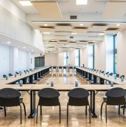 Our largest space, the Ágora Room, allows up to 500 people in cocktail format, and other spaces reach 430 people depending on the setup.
