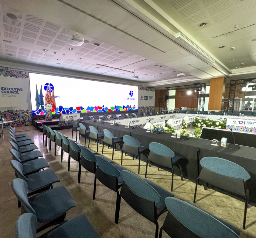 The Ágora Room can be transformed into two independent rooms: Ágora 1 and Ágora 2, facilitating the organization of simultaneous events or the creation of distinct areas within the same event.